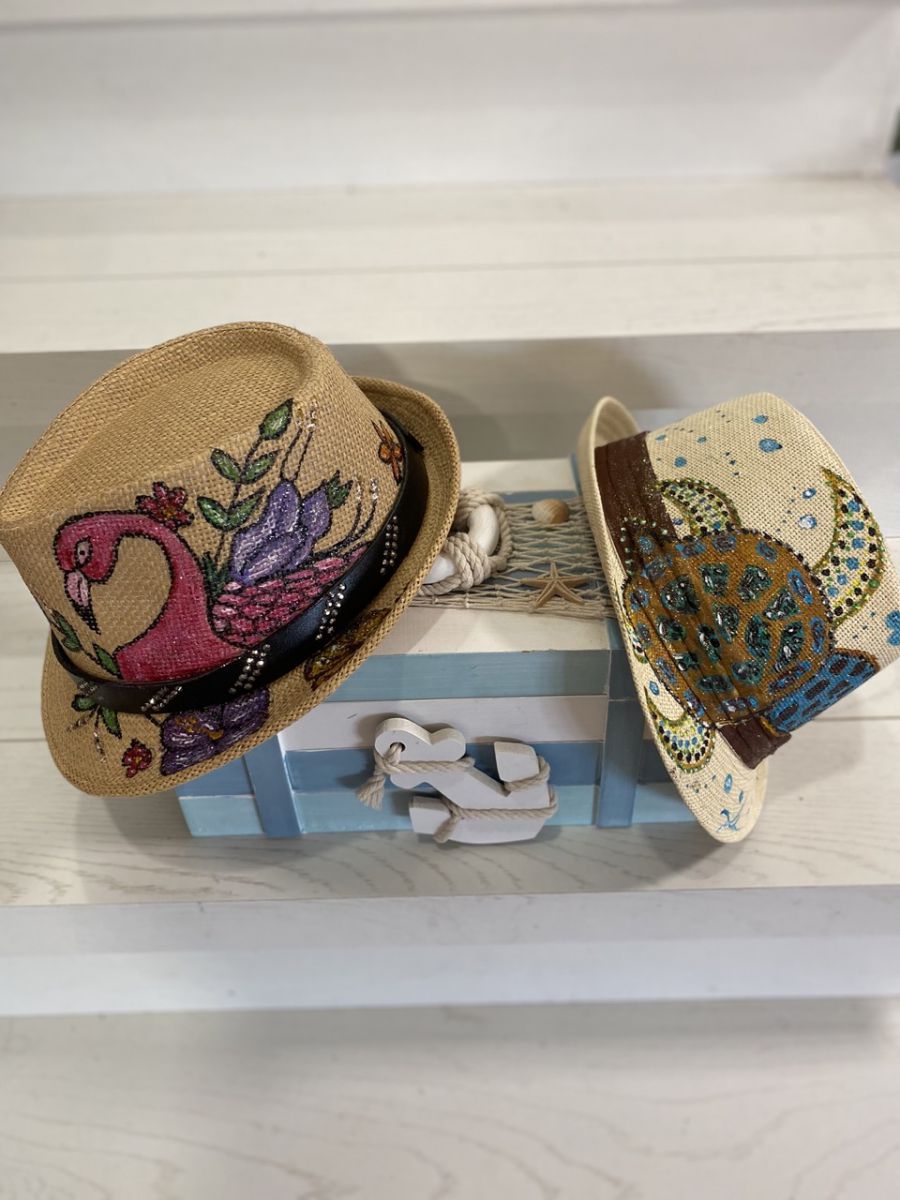 Bajo pedido realizo tambiene pintura de complementos, que sean gorro, gorra, pareo, sobreros, pamelas, abanicos y alpargata.